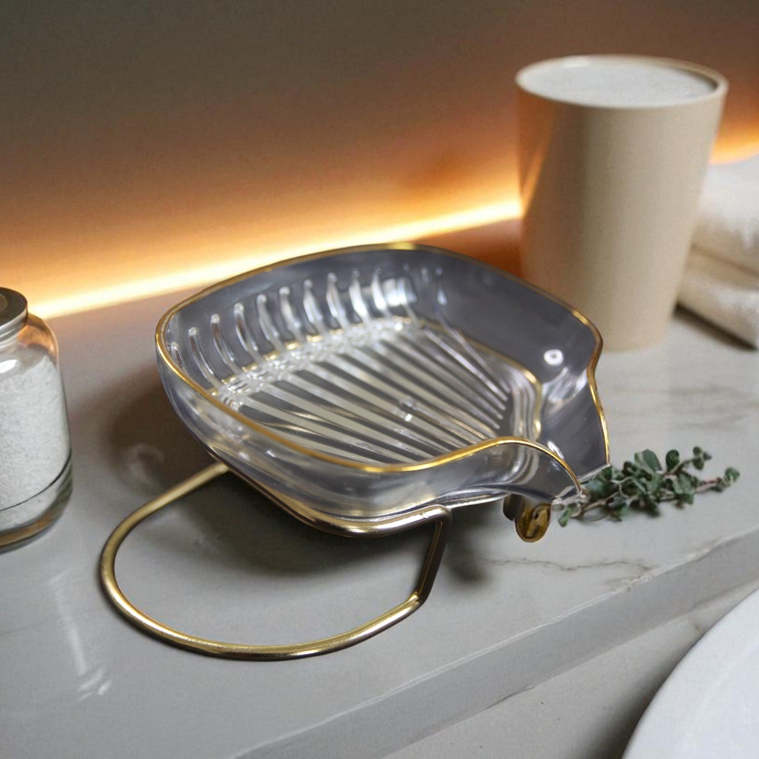 Add a touch of elegance to your bathroom with the Royale Essence Soap Tray. Featuring a sleek Nordic design, transparent finish, and gold trim, it’s perfect for displaying soaps or stylish storage. Durable, easy to clean, and effortlessly chic.